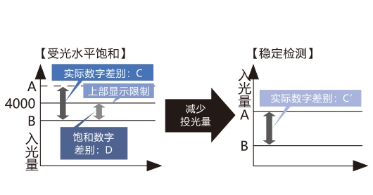 稳定检测微小物体,透明体投光量可调节功能近距离检测、检测透明物体或小型物体等情况下,受光水平达到饱和时,可减少传感器投光量,以实现稳定检测。