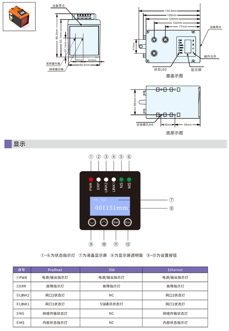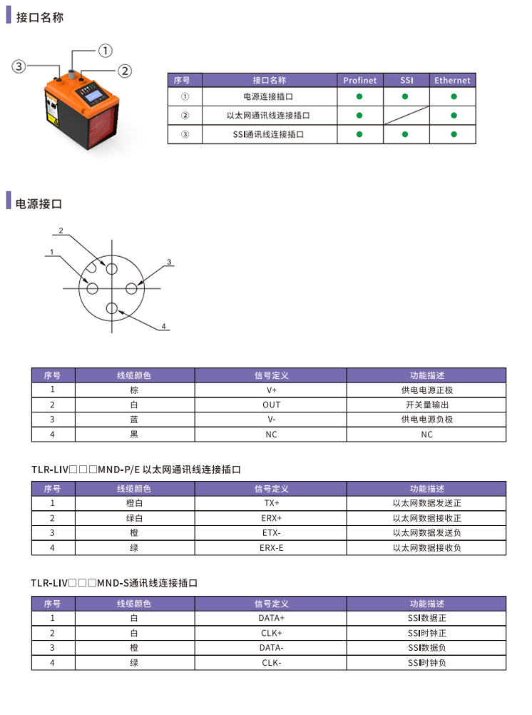 | 0.3~60m | TOF | 红色激光 | ±3mm | ±1mm | Profinet(2路) | TLR-LIV60MND-P |